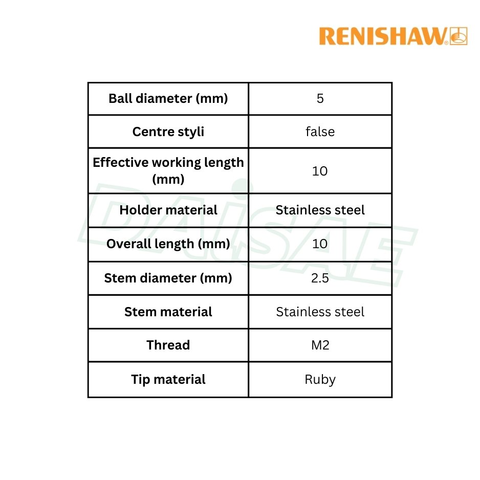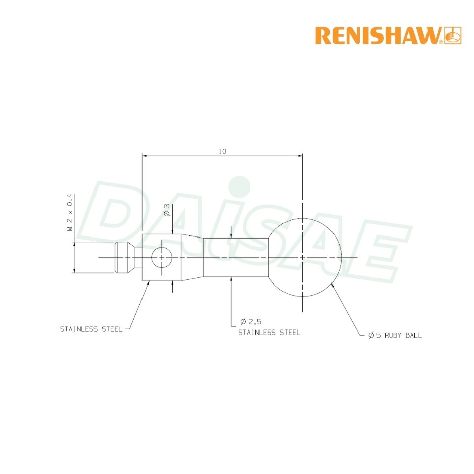 Renishaw l M2 Ø5 mm ruby ball, stainless steel stem, L 10 mm, EWL 10 mm รุ่น A-5000-4155