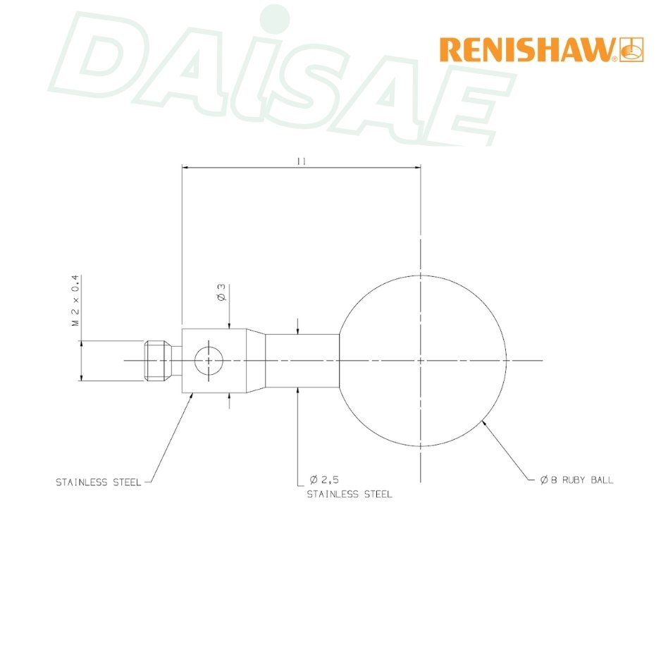 Renishaw l M2 Ø8 mm ruby ball, stainless steel stem, L 11 mm, EWL 11 mm รุ่น A-5000-4158